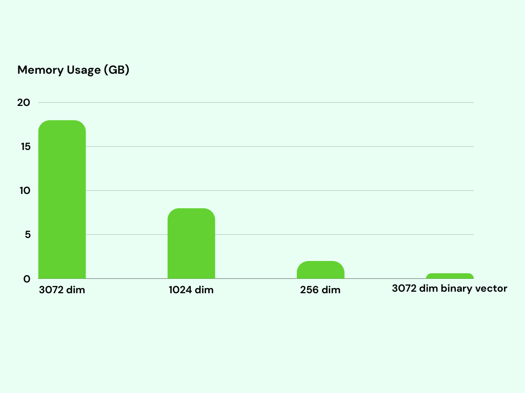 - Faster indexing and search: Smaller embeddings can be indexed and searched faster than larger embeddings.